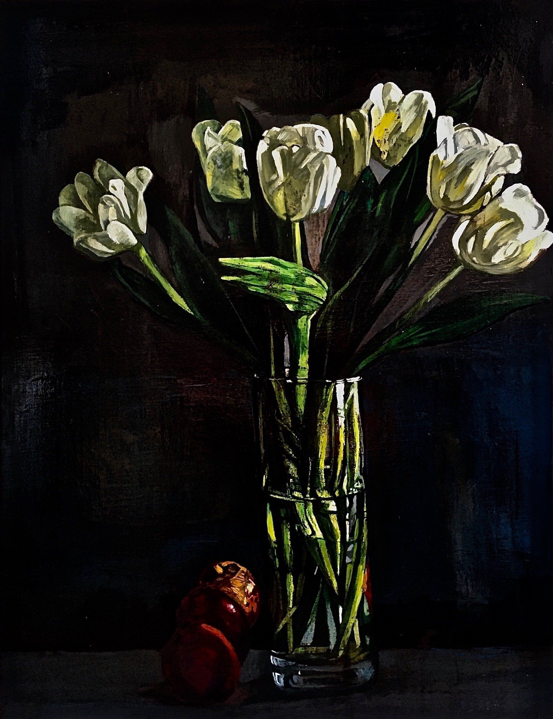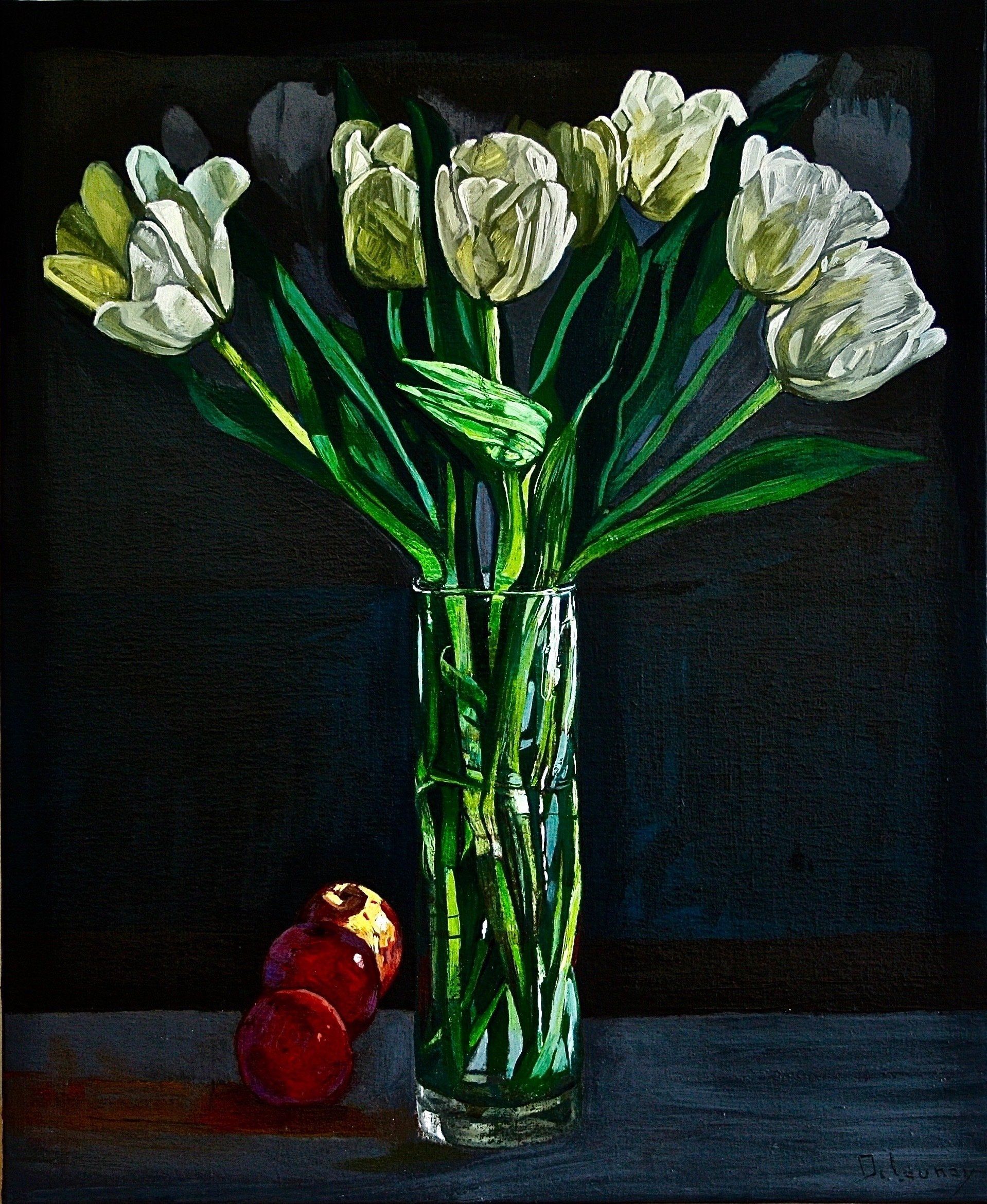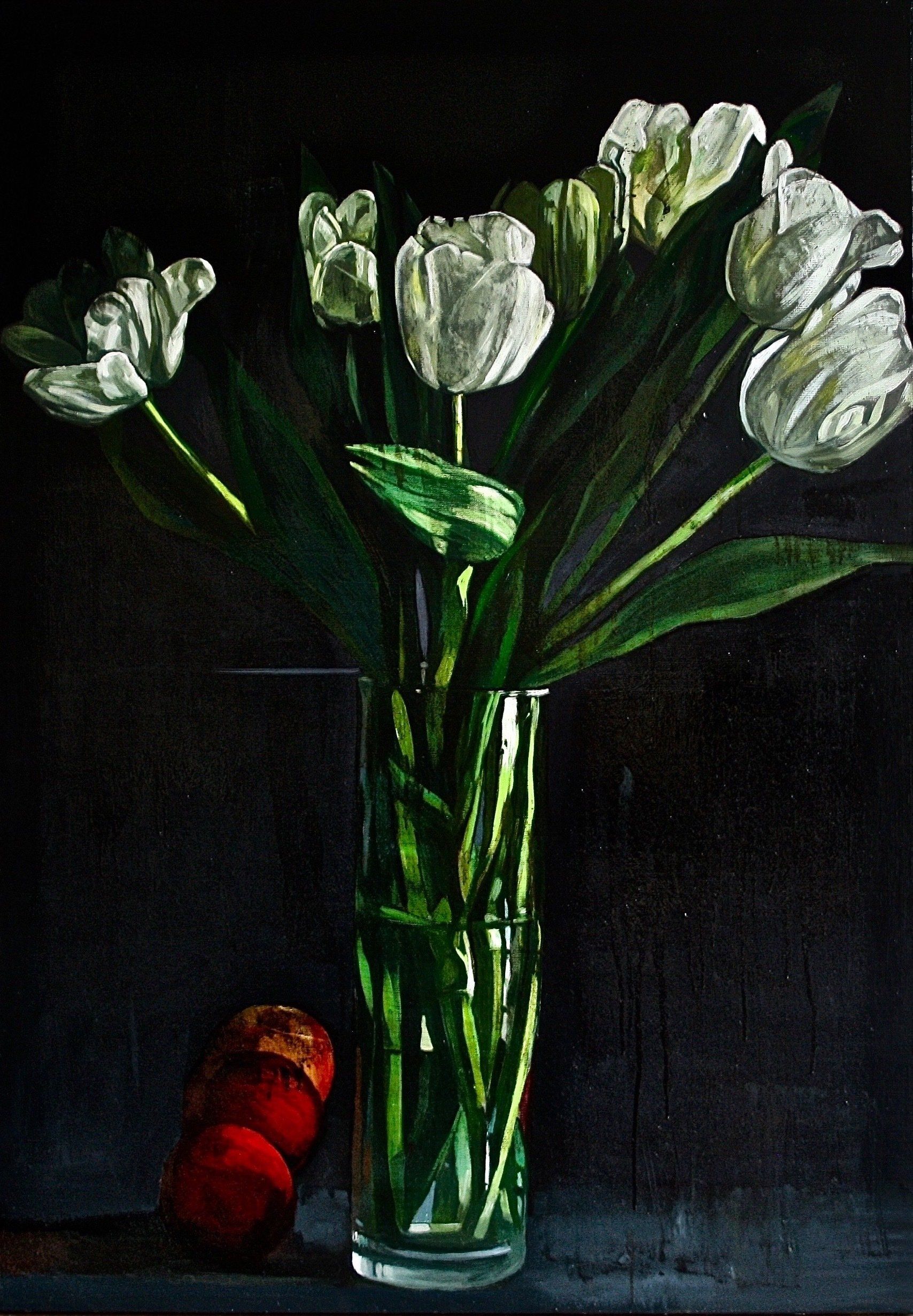 TULIPES BLANCHES ET POMMES ROUGES 2 - huile sur toile, oil on linen - 65x50 cm - 2020