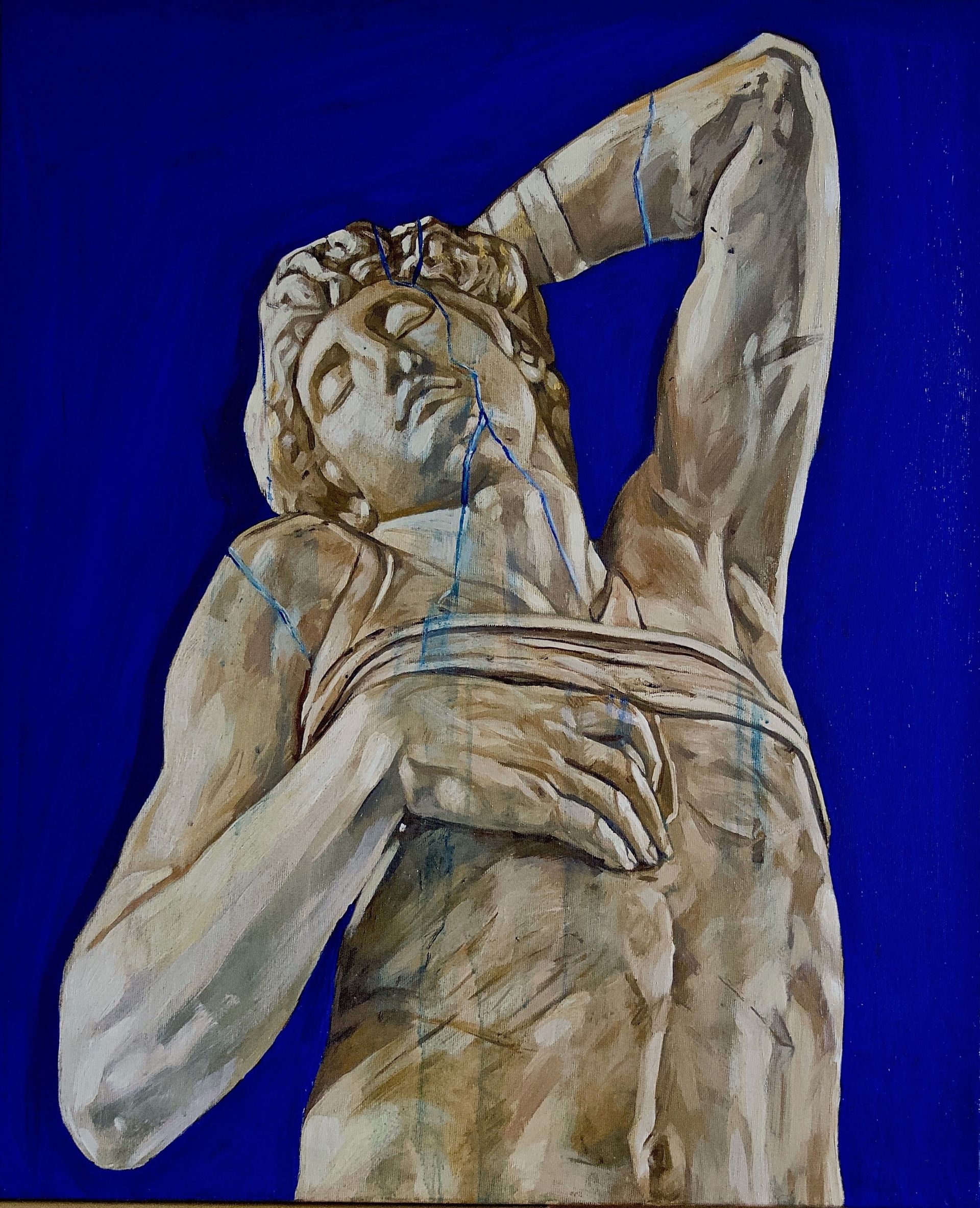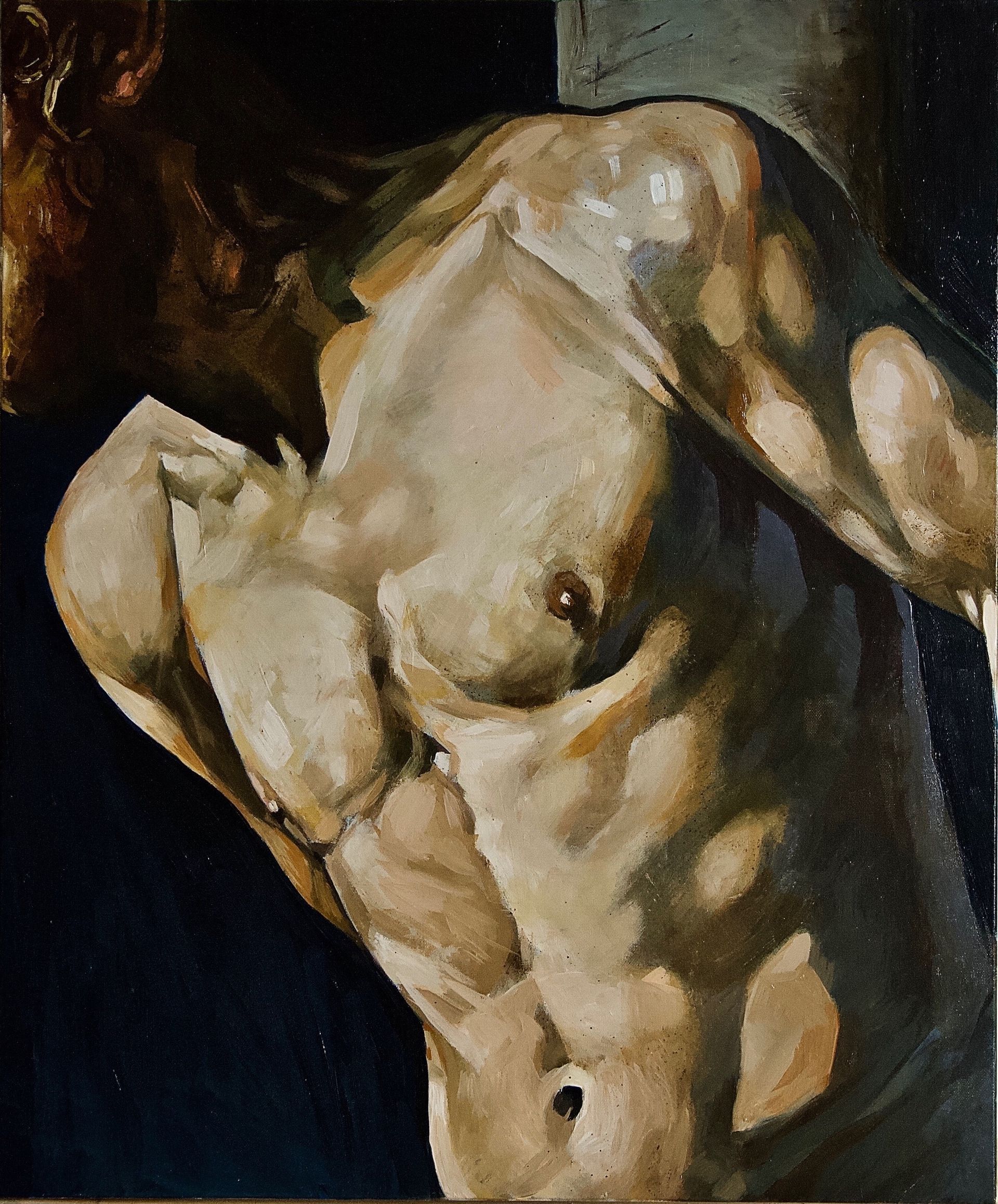 L'ESCLAVE MOURANT (d'après MICHEL-ANGE) - commande - huile sur toile de lin, oil on linen - 73x60 cm - 2023 - collection particulière