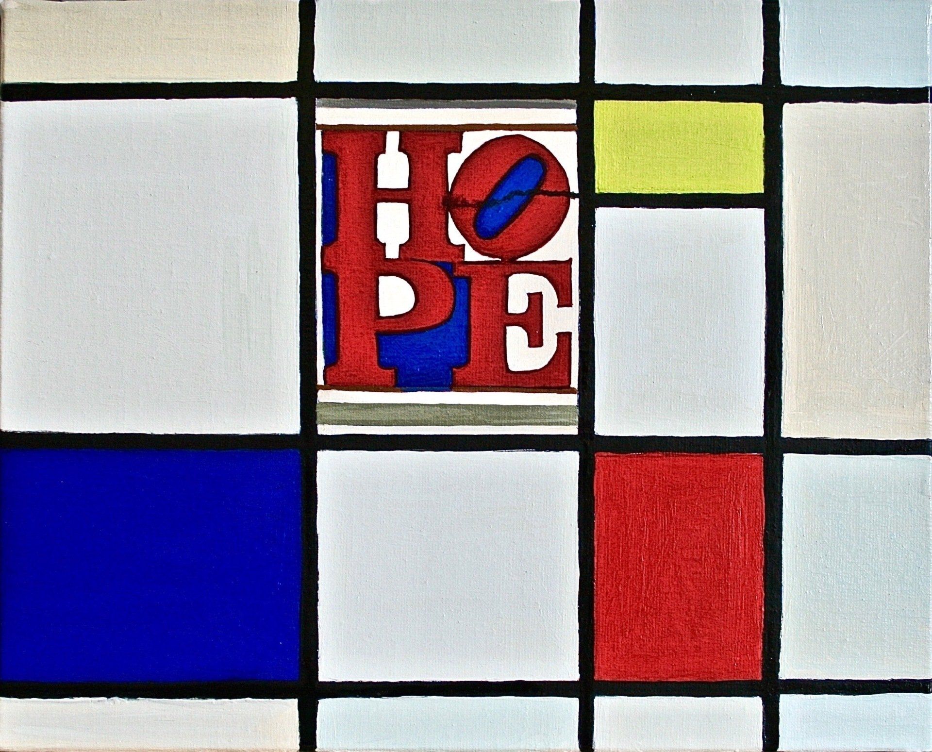 HOPE (d'après Robert Indiana, Piet Mondrian) - huile sur toile,